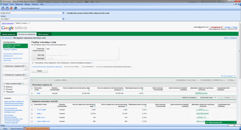 It is more convenient and a hundred times faster to work with this program than to work directly with the Google Keyword Tool; the program is also able to gather keywords from an additional 11 resources.