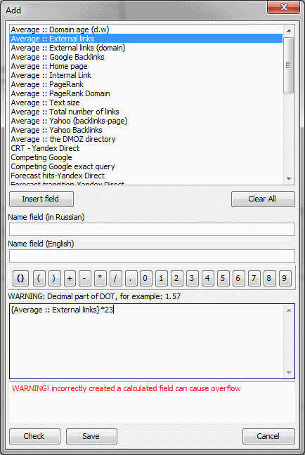 It enables the user to create any calculated fields on the basis of the received data, for example our own calculation formula KEI.