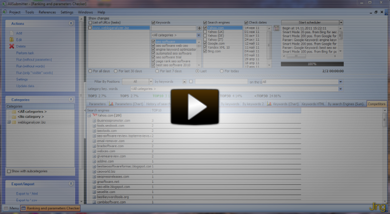 The utility checks positions and different parameters of your sites and the sites of your competitors in search engines.